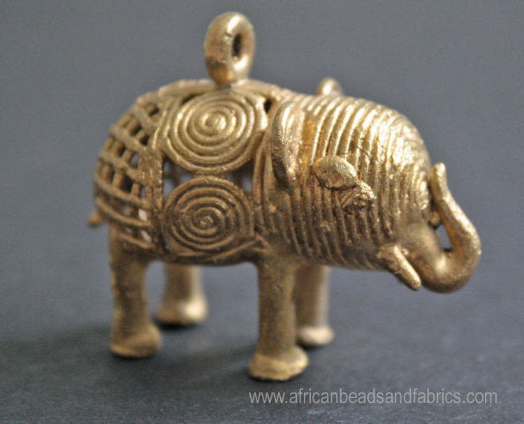 African-Brass-Elephant-Pendant-Ashanti-Ghana-Lost-Wax-Mesh-Swirl-Design