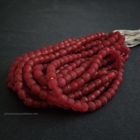These beads are referred to as “trade beads” as they were a form of currency for purchasing goods in West Africa. Unfortunately, there is a sinister association between use of these beads and the Trans-Atlantic slave trade.
