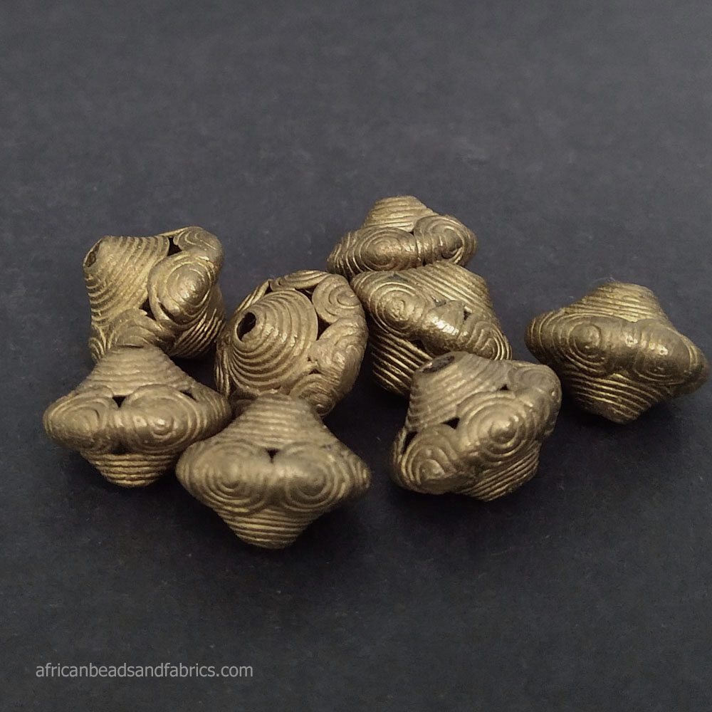 4 African Brass Metal Beads Handmade Spinning Top-Shaped