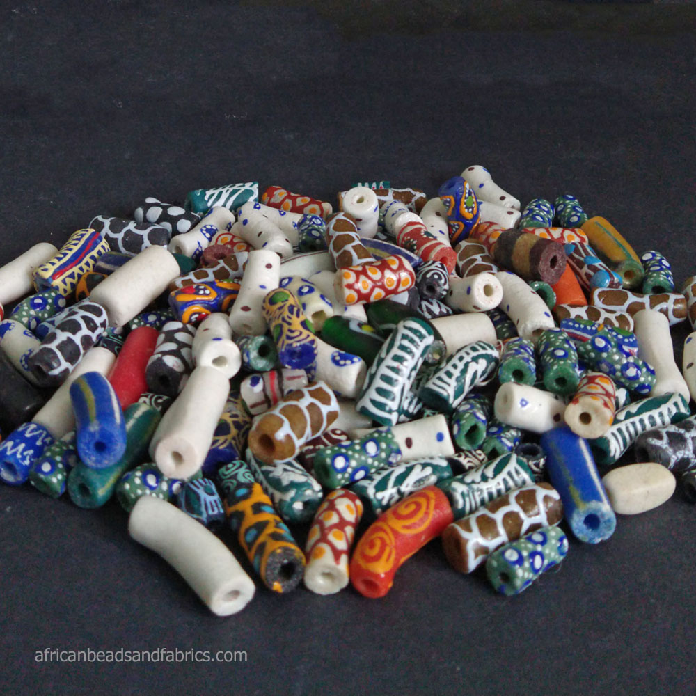 Mixed Lot African Beads Handmade Recycled Glass Tubes