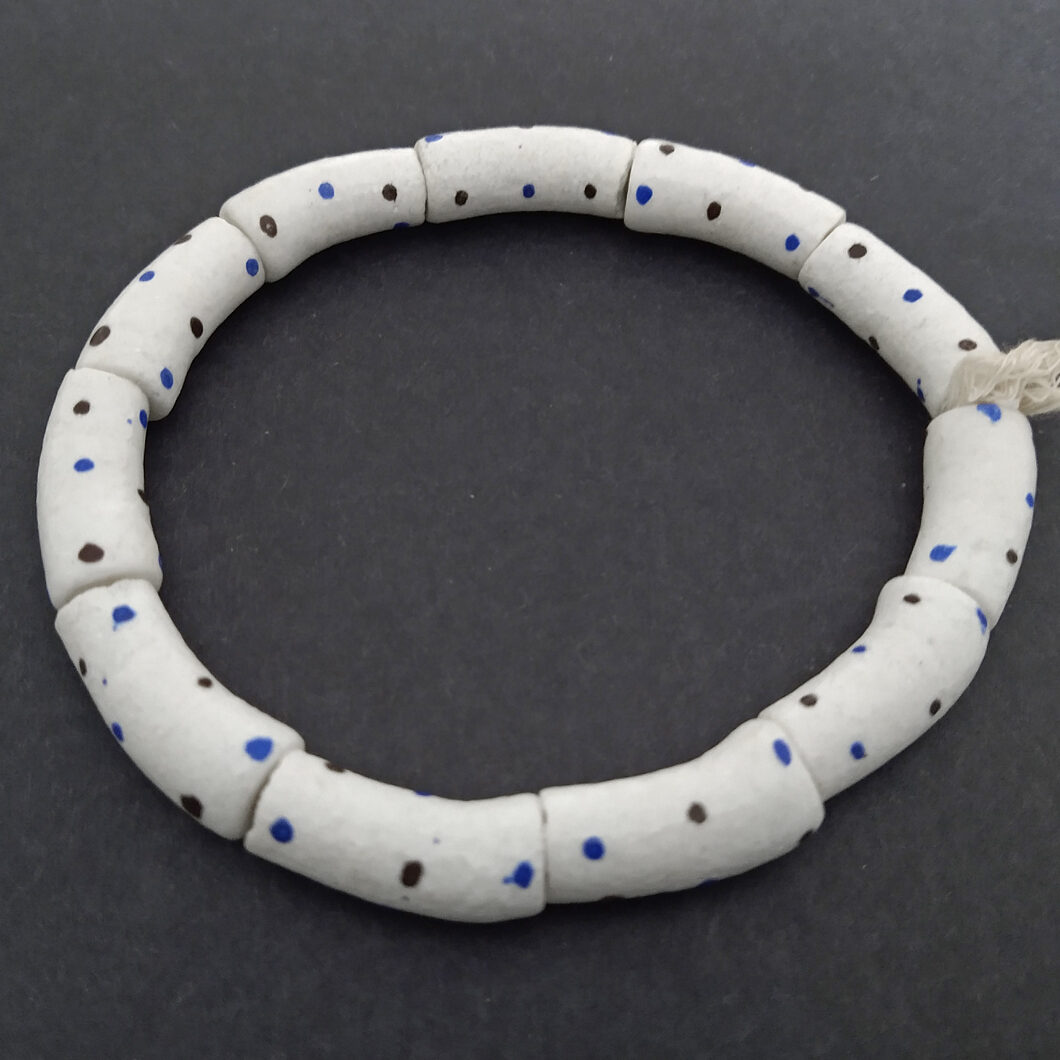 white African beads on strand, handmade from recycled glass in Ghana’s Krobo ethnic region using old and traditional techniques. Can be used for beading, accents to bags, key rings, and loads more